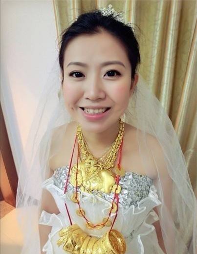 Cô dâu cố gắng trưng diện hết tất cả số vàng bạc được tặng lên người trong ngày xuất giá.