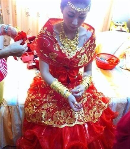 diện hết tất cả số vàng bạc được tặng lên người trong ngày xuất giá.