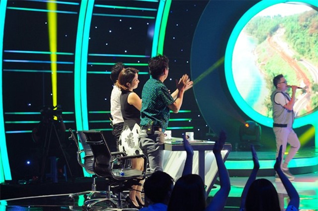 Giám khảo đứng bật dậy vì thích thú trước màn trình diễn của nữ ca sĩ trẻ. Ảnh: Lý Võ Phú Hưng