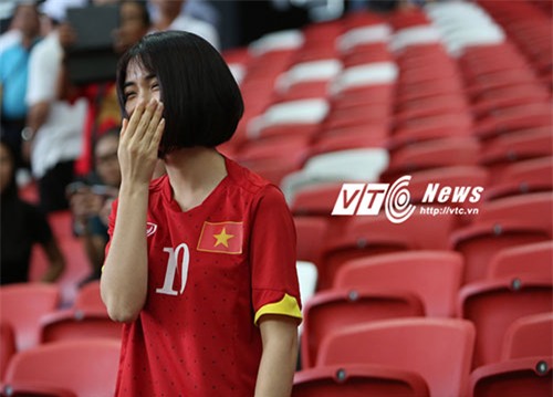 Hòa Minzy hò hét cổ vũ cho Công Phượng.(Ảnh: Phạm Thành) |