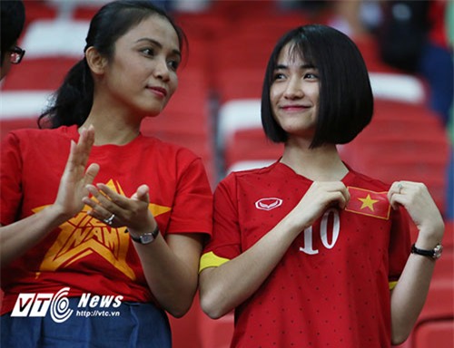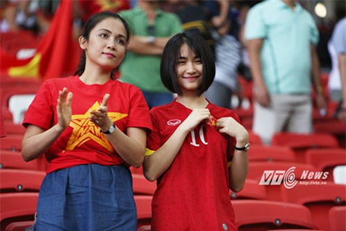 Phải đến trận tranh hạng 3 mới thấy Hòa Minzy đến sân cổ vũ cho Công Phượng.(Ảnh: Phạm Thành) |