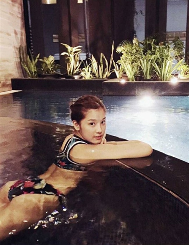 Cô bạn thân của Hòa Minzy đẹp hút mắt ở bể bơi.