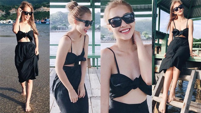 Khi ra biển, Hòa Minzy chỉ dám mặc gợi cảm tới mức này.