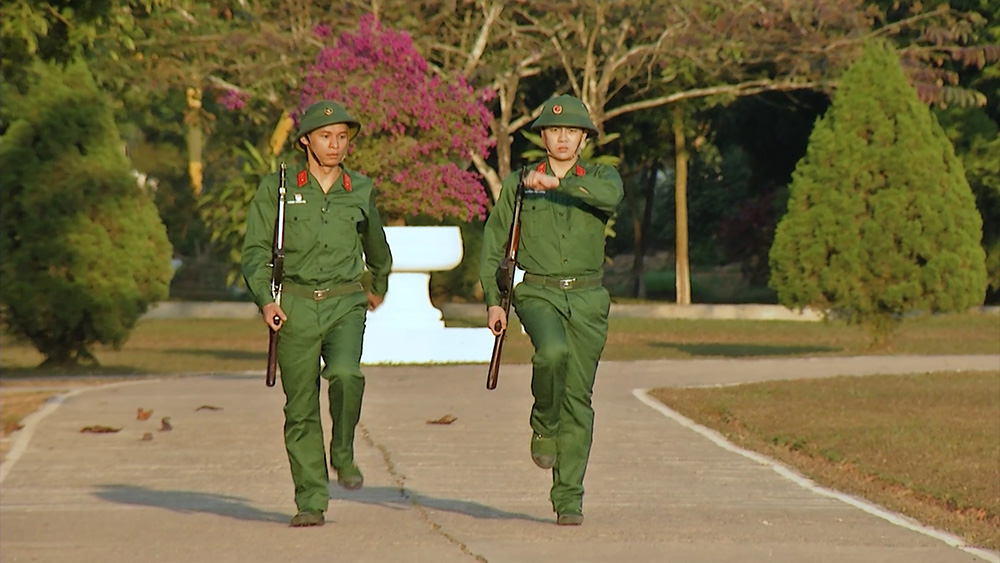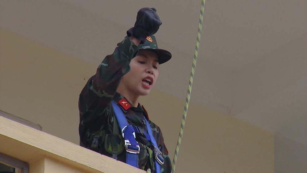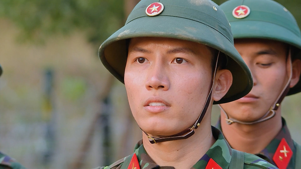 Ngay sau đó là vẻ mặt lo lắng của Hòa Minzy cùng câu nói gay gắt của Trung đội trưởng: "Các đồng chí nhất nhất nghe theo khẩu lệnh, không cười đùa".
