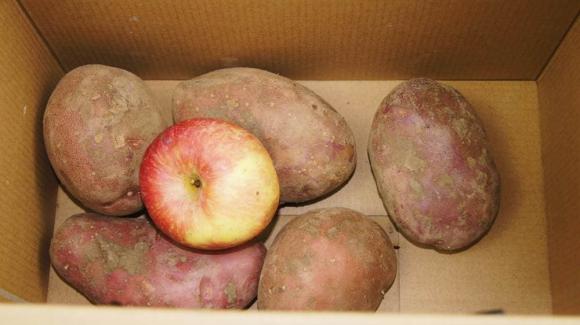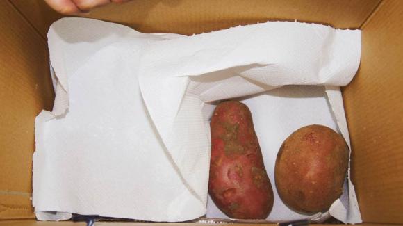 Thứ nhất: phương pháp bảo quản bằng táo trong thùng carton. Chúng ta tìm một cái hộp bìa cứng khô, lấy khoai cần để dành ra, kiểm tra khoai, nếu thấy củ khoai nào bị hỏng, sứt mẻ thì bỏ đi. Sau đó cho những củ khoai tây còn nguyên vào hộp bìa cứng, xếp phẳng từng củ một, không chất đống và ép chặt, sau đó đặt táo vào, táo sẽ tự tiết ra khí etylen làm ức chế sự nảy mầm của khoai tây. Sau khi cho khoai tây và táo vào thì đậy kín hộp, cất vào nơi thoáng gió, mát mẻ, cách bảo quản khoai tây này để lâu sẽ không nảy mầm.
