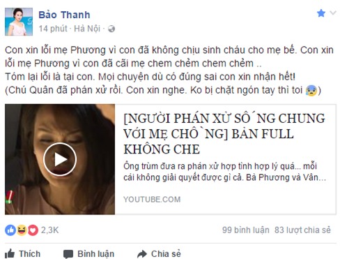 “Con dâu” Bảo Thanh đã thực hiện phán quyết!