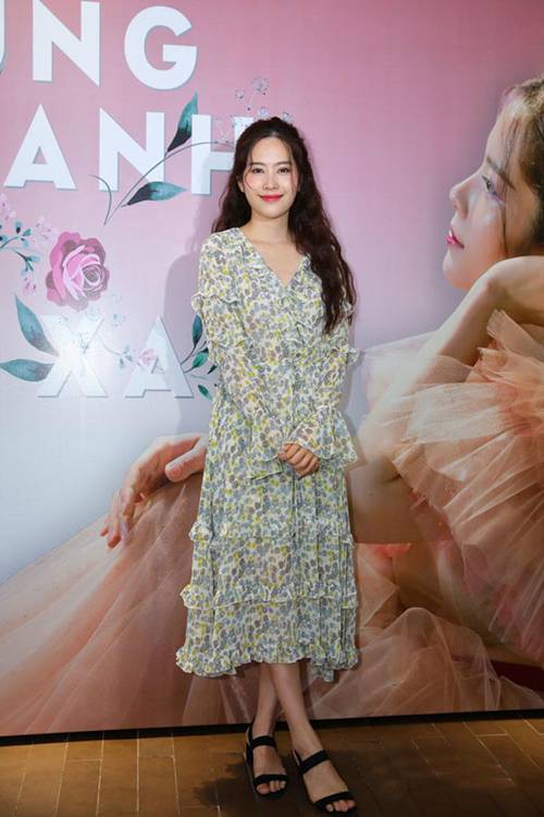 Nam Em xóa nhòa vẻ đẹp của cô khi mắc lỗi chọn đồ. Mẫu váy hoa cô chọn không chỉ có màu sắc nhạt nhòa mà còn gây... mệt mắt cho người đối diện khi có nhiều điểm nhấn bèo quá dài và điểm xòe rộng nơi cánh tay.
