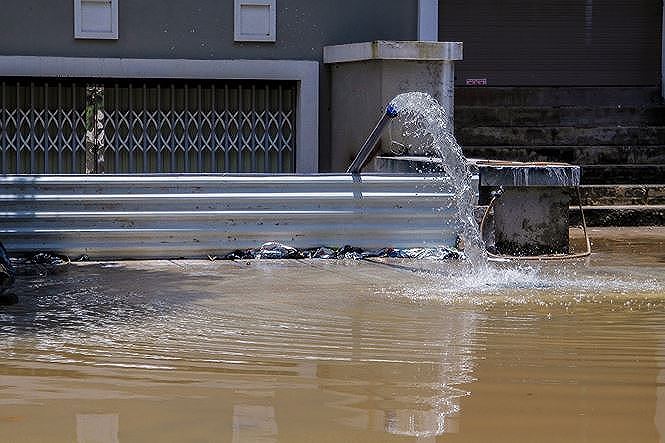 Hầu hết các hộ dân ở các nhà biệt thự, nhà phố liền kề thuộc Khu A đô thị Lê Trọng Tấn – Geleximco phải sắm máy bơm công suất lớn để hút nước tràn vào hầm khi mưa to.