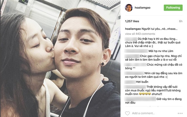 Người hâm mộ để lại bình luận bày tỏ sự "đau lòng" khi thấy Hoài Lâm khoe ảnh công khai người yêu.