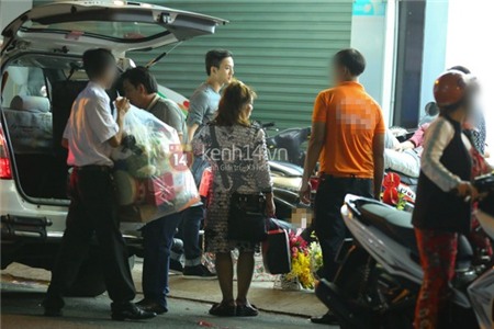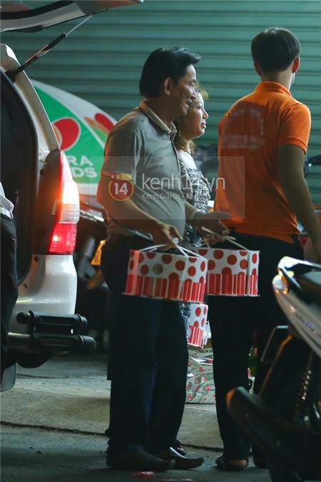 ... thì mẹ ruột Hoài Lâm mang bánh kem và quà của con mình ra xe