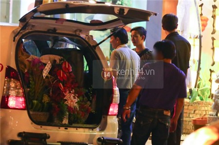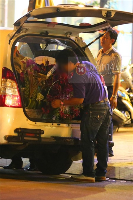 Bố Hoài Lâm cũng mang những giỏ hoa quà tặng của con mình ra xe