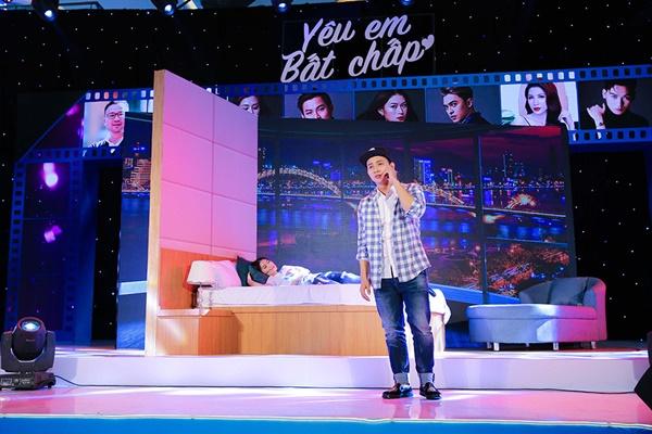 Anh chàng diễn viên Hoài Lâm đã không ngại ngần diễn lại cảnh đưa bạn gái mình vào khách sạn trước hàng ngàn khán giả.