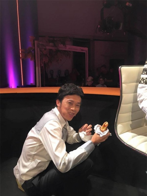 Thế nhưng, chia sẻ có phần hài hước của Đàm Vĩnh Hưng lại khiến fan Hoài Linh vô cùng xót xa. Bên cạnh Mr Đàm đang "hớn ha hớn hở" ăn tối cùng một người bạn là khoảnh khắc Hoài Linh ngồi xổm, đang tranh thủ ăn vội mẩu bánh mỳ trong hậu trường để kịp giờ làm việc tiếp theo. Khi phát hiện bị chụp trộm, nam danh hài còn vui vẻ và cười tươi rói. Nhìn hình ảnh gầy gò, quá giản dị, mộc mạc của Hoài Linh, nhiều người hâm mộ không khỏi cảm thấy rơm rớm nước mắt.