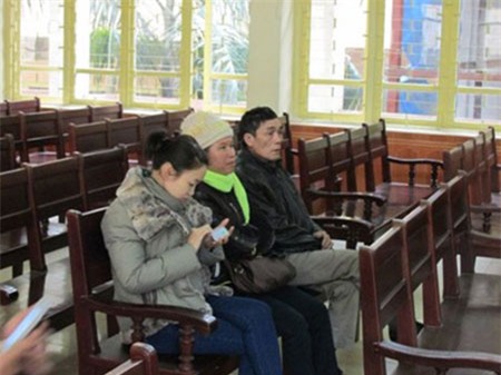 8h35: Thư ký tòa án kiểm tra những người được triệu tập tại phiên tòa. Bố của Lý Nguyễn Chung là Lý Văn Chúc có mặt. Bà Nguyễn Thị Lành (vợ ông Chúc) là người làm chứng cũng có mặt. Về phía bị hại, bà Hoàng Thị Hội (mẹ nạn nhân Hoan, đại diện cho gia đình nạn nhân) và anh Nguyễn Xuân Chung (con đầu nạn nhân Hoan) không thấy có mặt.