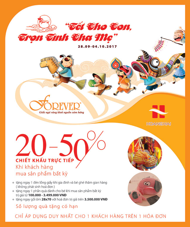 Mùa Trung thu năm nay, Hoàng Hải Forever áp dụng chương trình “Tết cho con, trọn tình cha mẹ” với nhiều phần quà hấp dẫn dành cho các bé.