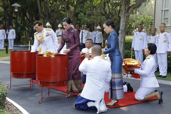 Quốc vương và Hoàng hậu Thái Lan làm lễ.