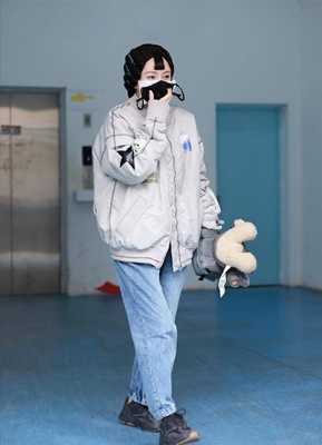 Trong một hình ảnh hậu trường được ghi lại, dù đã che gần trọn khuôn mặt nhưng hàng chân mày sợi chỉ cong dài cùng kiểu tóc mái khó cảm của Tần Lam đã làm dân tình không khỏi "đứng hình".