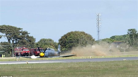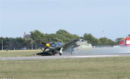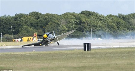 ngàng của hàng ngàn khán giả. Chiếc máy bay đâm mạnh xuống đường băng và