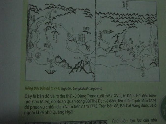 Cuốn sách cho học sinh (và tất cả những người Việt cần quan tâm) biết thật nhiều điều bổ ích, rằng chủ quyền quốc gia đã được thể hiện lần đầu tiên (một cách khái quát) trên Hồng Đức bản đồ (bản đồ được vẽ dưới thời Hồng Đức – 1470-1497, một trong hai Niên hiệu của vua Lê Thánh Tông). Rằng hình thể, tên chính thức Hoàng Sa – tức Bãi Cát Vàng, được thể hiện rõ ràng bởi người Việt đầu tiên vẽ là Đỗ Bá vào thế kỷ XVII.