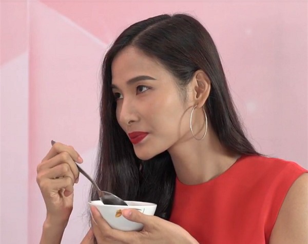 Hoàng Thùy gây bất ngờ khi... ăn chè trên sóng trực tiếp.