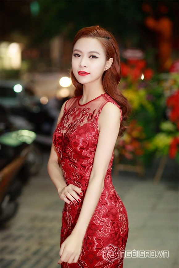 Hoàng Thùy Linh xinh đẹp, tỏa sáng trong bộ đầm ren đỏ ngọt