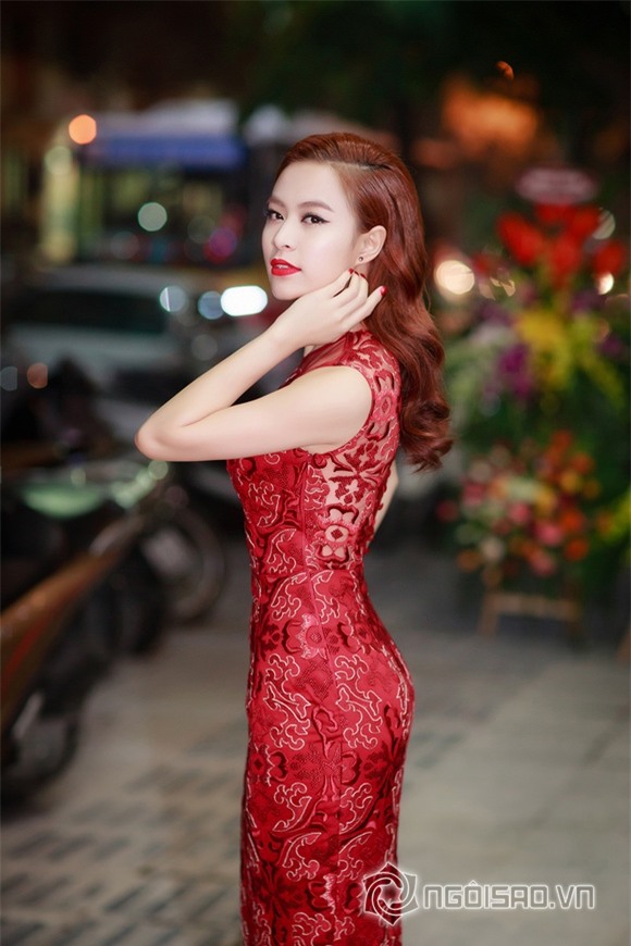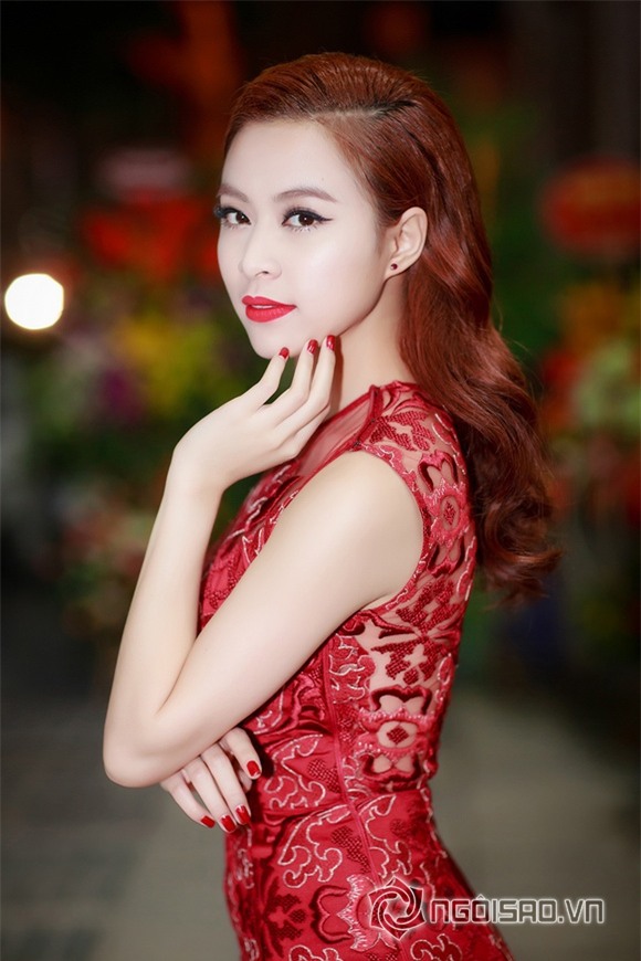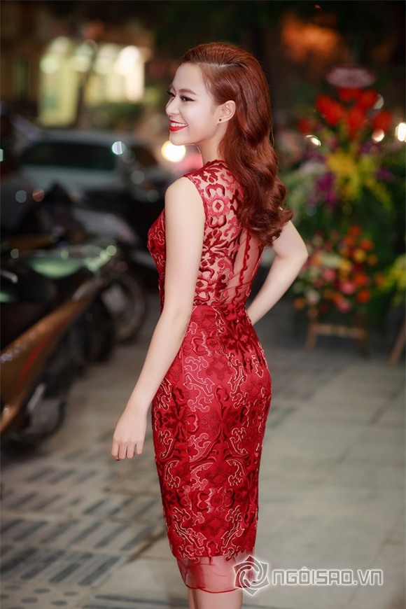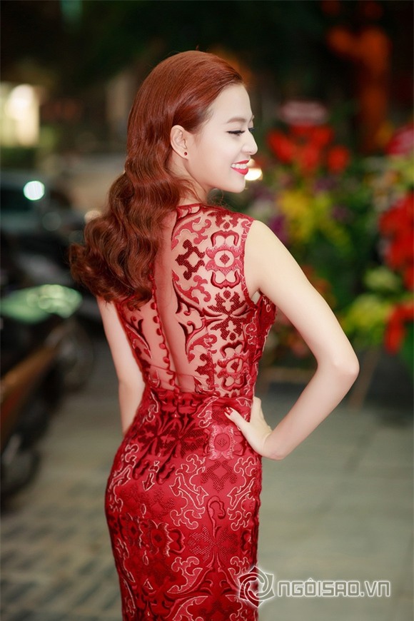 Hoàng Thùy Linh tỏa sắc rạng rỡ với đầm ren đỏ