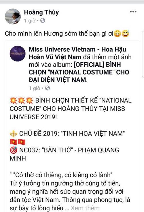 Á hậu Hoàng Thuỳ cũng rất sốc và cảm thấy thú vị khi nhìn thấy bài dự thi này, cô còn chia sẻ về trang cá nhân để người hâm mộ được xem.