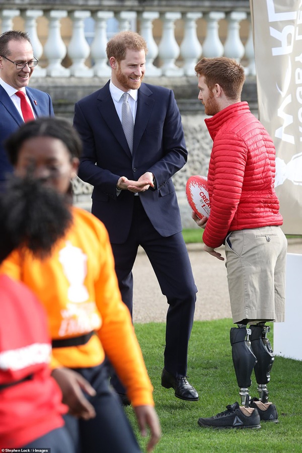 Dù tỏ thái độ với truyền thông nhưng Hoàng tử Harry lại vô cùng vui vẻ và thân thiện với những khách mời tham dự trong sự kiện. Vài giờ trước đó, hoàng tử nước Anh đã phát hành một video trực tuyến nói về sức khỏe tinh thần của các cầu thủ.