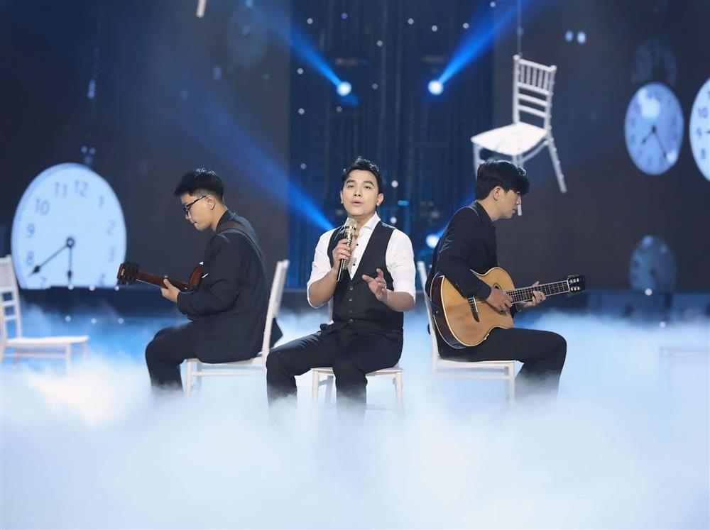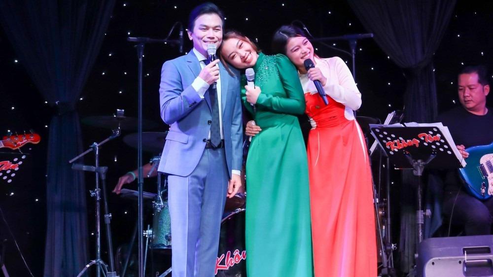 Mạnh Quỳnh và hai con nuôi của Phi Nhung trong đêm nhạc tưởng nhớ nữ ca sĩ.