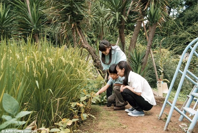 Hoàng tử Hisahito thường làm vườn cùng với hai chị gái của mình.