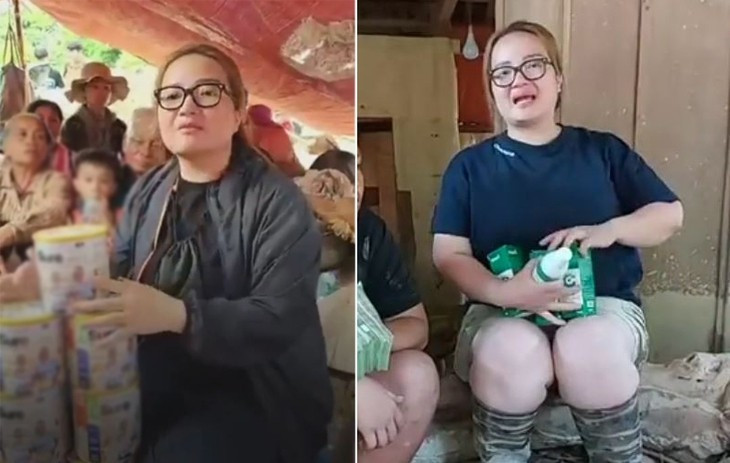 Hoàng Hường livestream bán hàng khi đi từ thiện ở vùng lũ gây tranh cãi. Ảnh chụp lại màn hình.