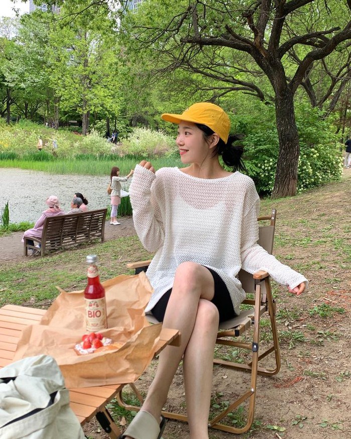 Áo len móc dành cho người "hướng nội" nên được layer cùng áo hai dây/áo quây cùng tone bên trong và biker short là xinh