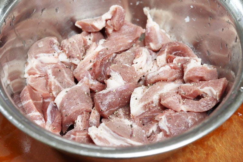 Bước 2: Thịt nạc vai rửa sạch rồi thái thành miếng vừa ăn.