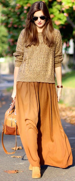 Áo len + váy midi