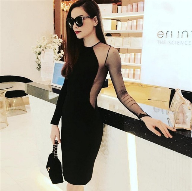 Đường cong mềm mại của người đẹp ẩn giấu trong chiếc váy đen phối lưới gợi cảm.