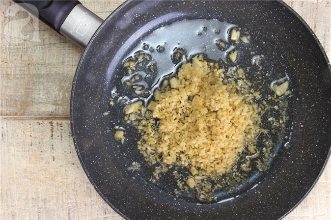 Đập dập, băm nhuyễn tỏi. Sau đó cho vào chảo phi thơm cùng sả băm.