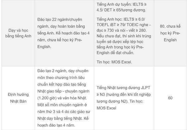 Có mức học phí cao thứ ba là chương trình đào tạo Tiên tiến, được dạy hoàn toàn bằng tiếng Anh với học phí 80 triệu đồng/năm. Các chương trình còn lại học phí dao động từ 30 đến 60 triệu đồng/năm.