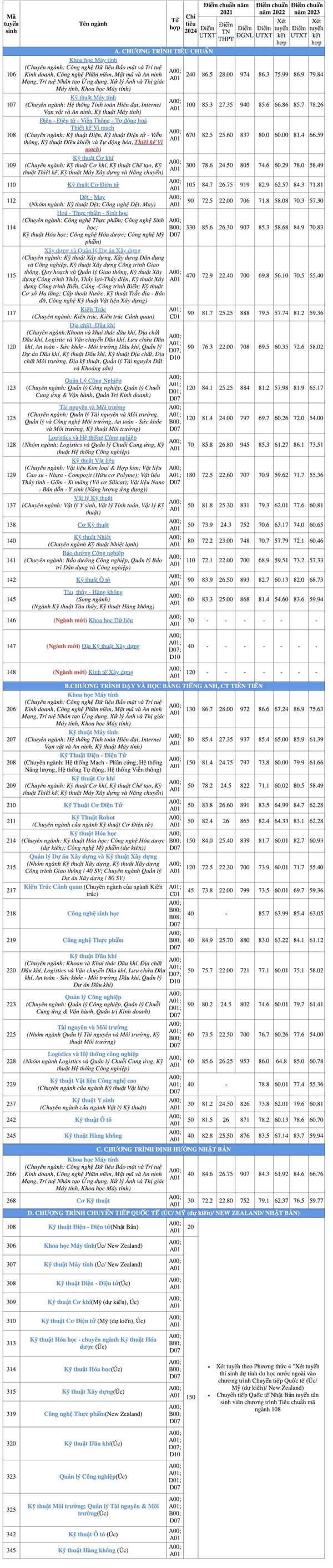 Sau đây là các ngành đào tạo và điểm chuẩn Trường ĐH Bách khoa TPHCM trong 3 năm qua để thí sinh và phụ huynh tham khảo: