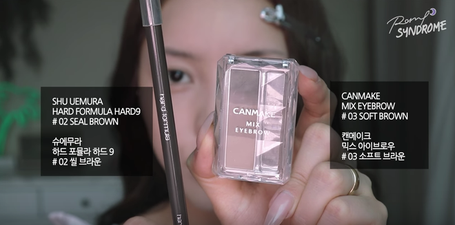 Để có được hàng lông mày sắc nét tự nhiên, Pony sử dụng bộ đôi sản phẩm phấn kẻ lông mày Canmake mix eyebrow màu #03 soft brow và chì kẻ lông mày Shu Uemura hard Formula màu #02 Seal brown. Một tip nhỏ mà Pony chia sẻ đó là bạn có thể tận dụng gam màu đậm nhất trong bảng phấn kẻ lông mày Canmake để vẽ eyeliner cho mắt và giúp cho đôi mắt nhìn có chiều sâu hơn.