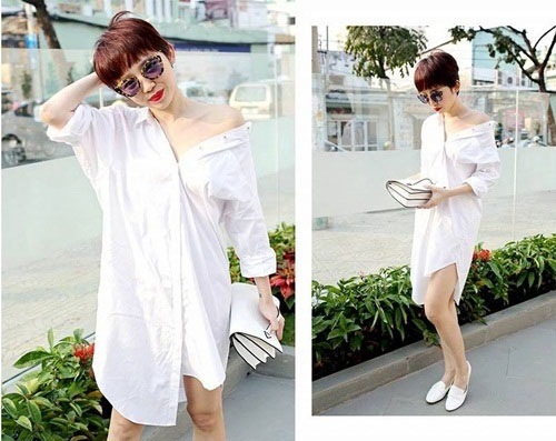 Tóc Tiên quá gợi cảm và quyến rũ khi diện cây trắng với tâm điểm là chiếc áo sơ mi oversized.