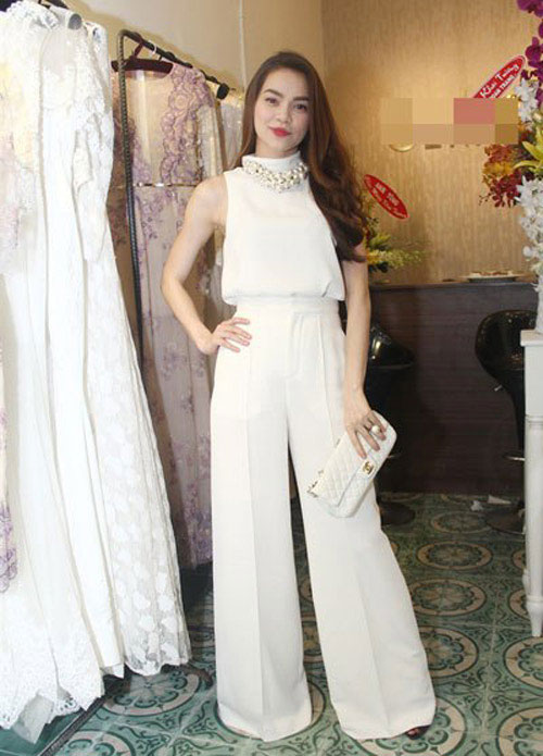 Cách kết hợp áo voan trắng cùng quần suông rộng khiến Hà Hồ trông rất lịch thiệp