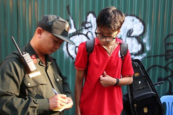 Lúc lập biên bản vi vi phạm hành chính, em D. (học sinh lớp 12) đã bật khóc, năn nỉ lực lượng chức năng.