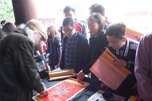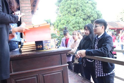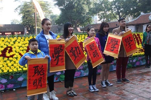 Ngày 9.2 (tức mùng 2 Tết Bính Thân), nhiều người dân đổ về Văn Miếu Quốc Tử Giám xin chữ lấy may đầu năm. Trong đó, nhiều em học sinh đã xin riêng cho mình chữ: đỗ đạt, tài đức, quyết, chí,… để hy vọng một năm mới sẽ học tốt hơn và thi đỗ trường mình mong muốn.