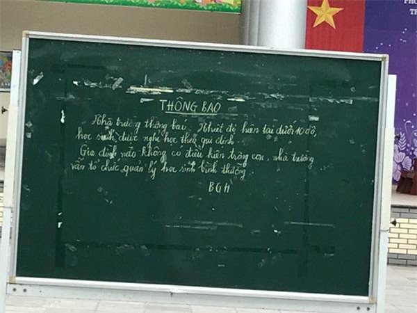 Sáng ngày 30/1, do ảnh hưởng của không khi lạnh, nhiệt độ ở Hà Nội giảm sâu, có thời điểm chỉ còn 9 độ C, vì thế nhiều trường tiểu học đã thông báo cho học sinh nghỉ học.
