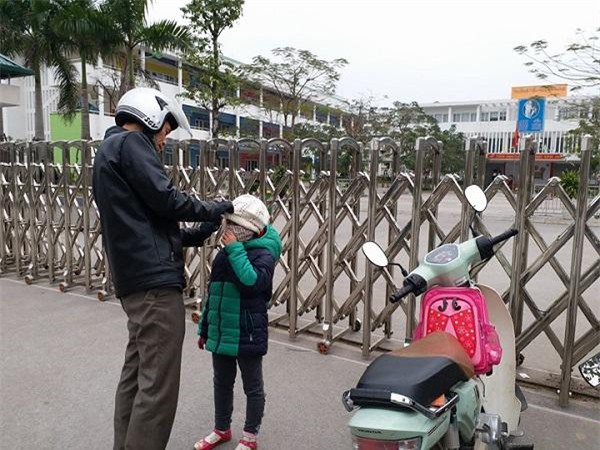 Anh Đặng Đức Thịnh ở An Hưng, Hà Đông khi thấy thời tiết ngày càng lạnh hơn, đã chủ động đến trường đón con về nhà.