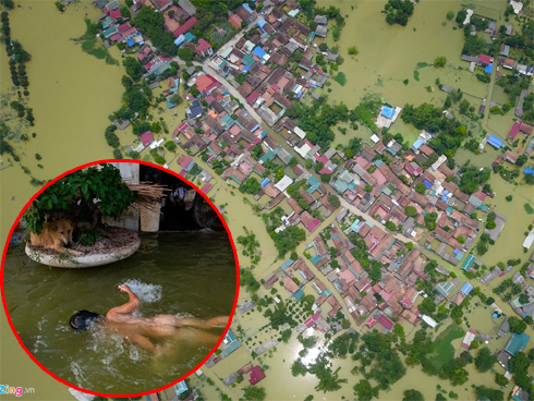 Em Nguyễn Văn Tuấn (lớp 9, trường THCS Cấn Hữu) hàng ngày cứ 2 lượt trèo cây nhãn vượt nóc nhà hàng xóm đi học, nhà em nằm trong ở trung tâm thôn, lội nước sẽ ngập đến ngực, ngõ nhỏ thuyền không thể đi vào nên em chỉ còn cách leo trèo để ra ca nô tới trường.