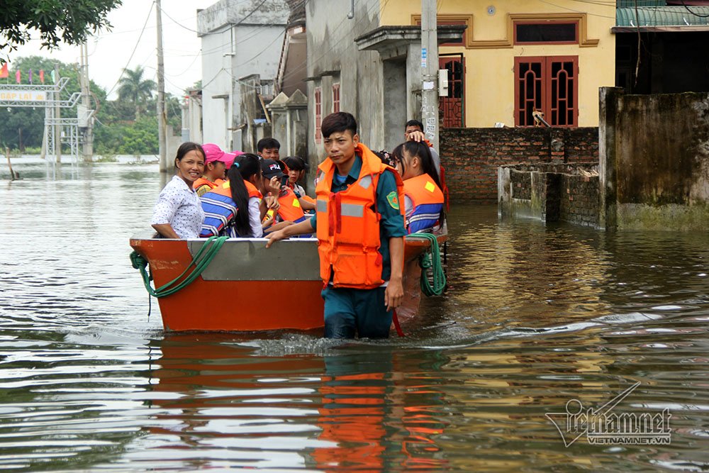 Năm nay, mực nước được cho là ngập sâu nhất trong lịch sử. Đã hơn 10 ngày nay, con đường dẫn vào thôn dài hơn 600 mét ngập mênh mông nước, đi bộ qua rất nguy hiểm, 3 ca nô cùng thuyền được huy động hàng ngày chở bà con ra vào.