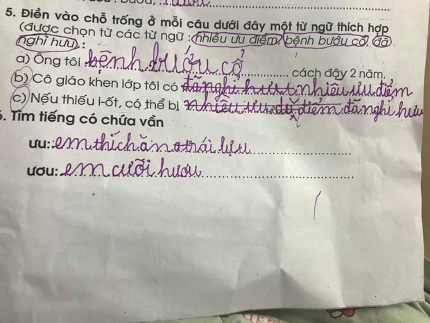 Thêm cả bài tập điền chỗ trống cho học sinh tha hồ sáng tạo. (Ảnh: Đặng Thanh Vân)