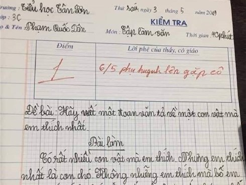 Bằng sự thật thà của mình, cậu bé lớp 3 viết văn tả con chó 'không đủ tiền mua cả con nên mẹ em mua theo cân' khiến cộng đồng mạng phì cười.