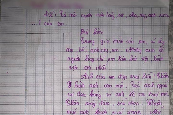 Tập làm văn là một trong những môn học quan trọng nhất của trẻ nhỏ ở lứa tuổi tiểu học. Thông thường trẻ sẽ được yêu cầu tả một sự vật, sự việc, tả người thân hoặc kể lại một câu chuyện thú vị từng trải qua. Với đầu óc tưởng tượng phong phú, cộng thêm sự ngây ngô mà nhiều khi, trẻ sáng tạo nên vô vàn áng văn bất hủ. Không ít lần, người lớn đọc xong văn của trẻ vừa phì cười vừa giật mình thon thót.